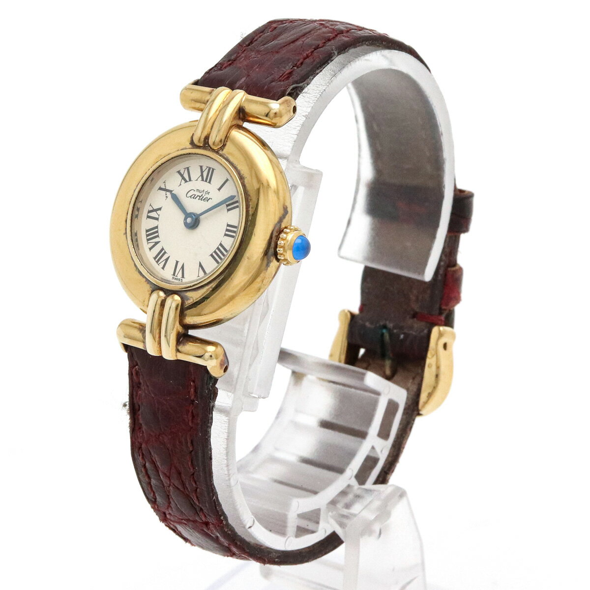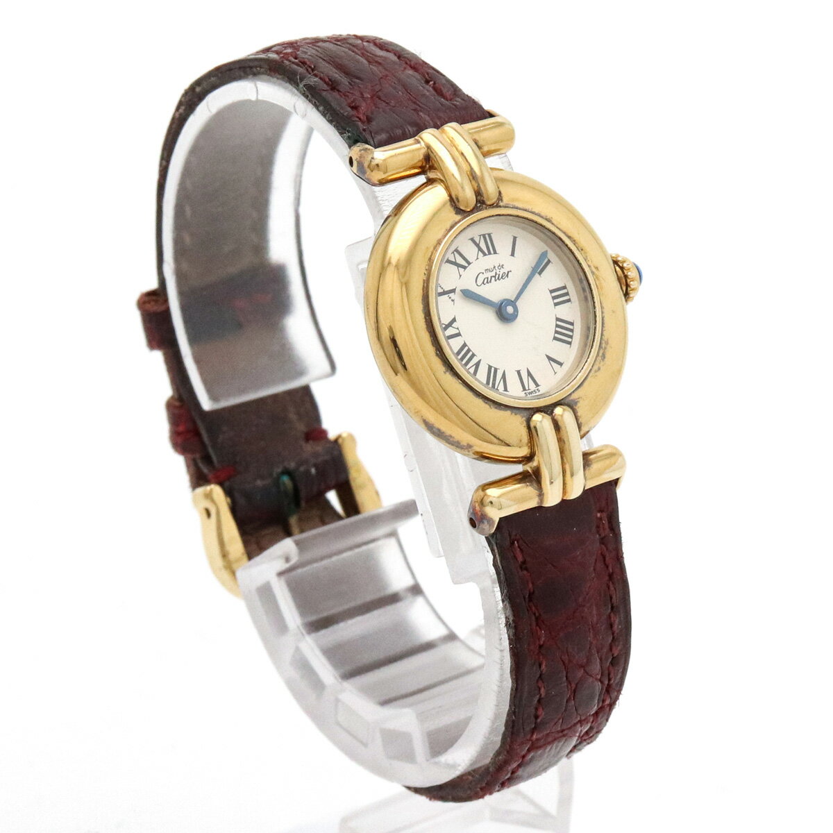 商品詳細 ケースサイズ W24mm(リューズ除く) H31mm(ラグ含む)ブレスサイズ 14.5-18cm材質 SV925/クロコ革ベルトムーヴメント クォーツ/電池式文字盤カラー アイボリー付属品 外箱 内箱 取扱説明書 コンディション 程度 中古AB ケース スレブレス 黒ずみ特記事項 文字盤汚れ コメント カルティエらしい上品で高級感溢れる腕時計。