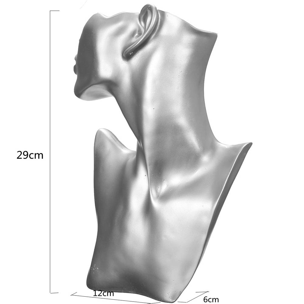 店舗用アクセサリーディスプレイ(シルバー)銀色 顔 上半身 撮影用 ピアス スタンド ネックレス チョーカー ペンダント 耳 胸 体 ディスプレイ 業者 マネキン 撮影用 動画用 写真用 大きい マネキン 立て 体 ショップ 新規開店 チェーン 飾る 展示 ショーケース 什器