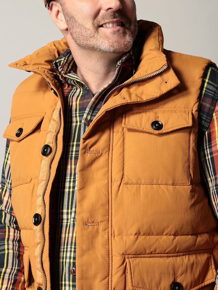 寒い冬にマストバイなコットンタッチ フルジップ スタンド ダウンベスト。