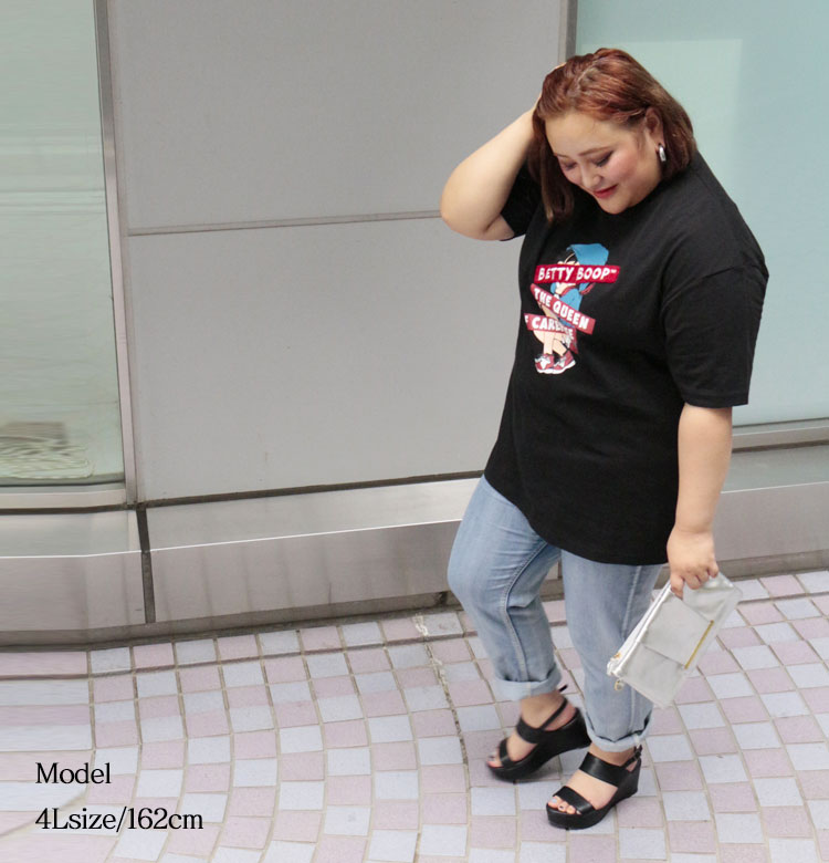 人気の高いベティーちゃんイラストも、今季はHIPHOPな印象でクールにコーディネートがオススメ◎サイズ3L,4L,実寸(cm)2XL(3L) 身丈 76cm 身幅 57cm 肩幅 55cm 裾口幅 57cm 裄丈 49cm アームホール 25cm 袖丈 21.5cm 3XL(4L) 身丈 79cm 身幅 60cm 肩幅 57cm 裾口幅 60cm 裄丈 51cm アームホール 26cm 袖丈 22.5cm 素材[本体] 綿100% [リブ] 綿95% ポリウレタン 5% [刺繍部分] アクリル100%備考こちらのサイズ表記は平置き採寸のサイズです。