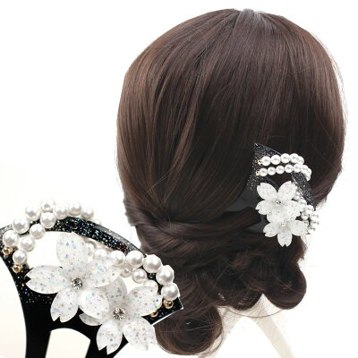 髪飾り 黒留袖 結婚式 成人式 振袖 和装 バチ型 パール 簪 かんざし ラメ桜 袴 卒業式 着物 入学式 ヘアアクセサリー ウェディング 前撮り パーティー 花しおり s0