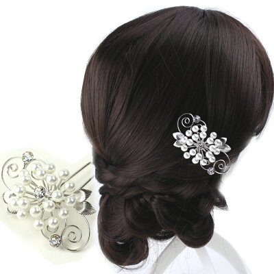 髪飾り 黒留袖 結婚式 成人式 振袖 和装 パール 花簪 かんざし 袴 卒業式 着物 入学式 ヘアアクセサリー ウェディング 前撮り パーティー 花しおり シルバー s0