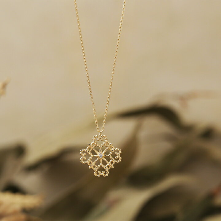 ネックレス ゴールド レディース k18 18金 ネックレス K18ネックレス レース風 スクエア ハート ダイヤモンド誕生日 プレゼント ギフト ジュエリー 可愛い 彼女 妻 DEVAS ディーヴァス 【送料無料】