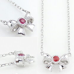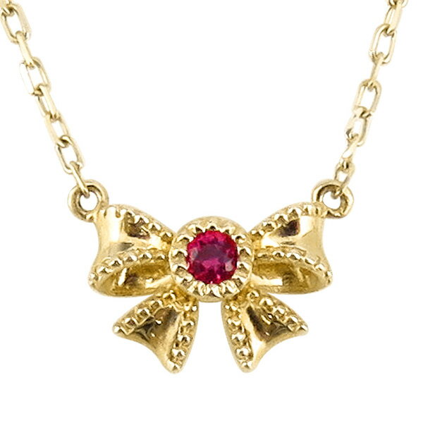 ルビーネックレス 7月誕生石 18金 一粒 ペンダント リボン カラーストーン 誕生日 ネックレス レディース チェーン シンプル 新生活 在宅 ファッション