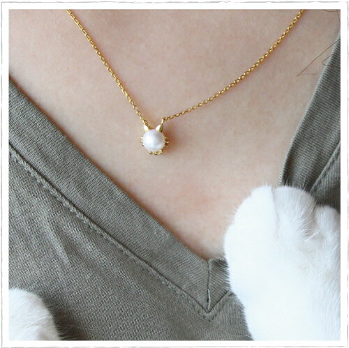 【あこや真珠6mm】K18 ネッコレス 猫ネックレス キャット パールネックレス アコヤ真珠 一粒 ゴールドネックレス 18金【ミルク】